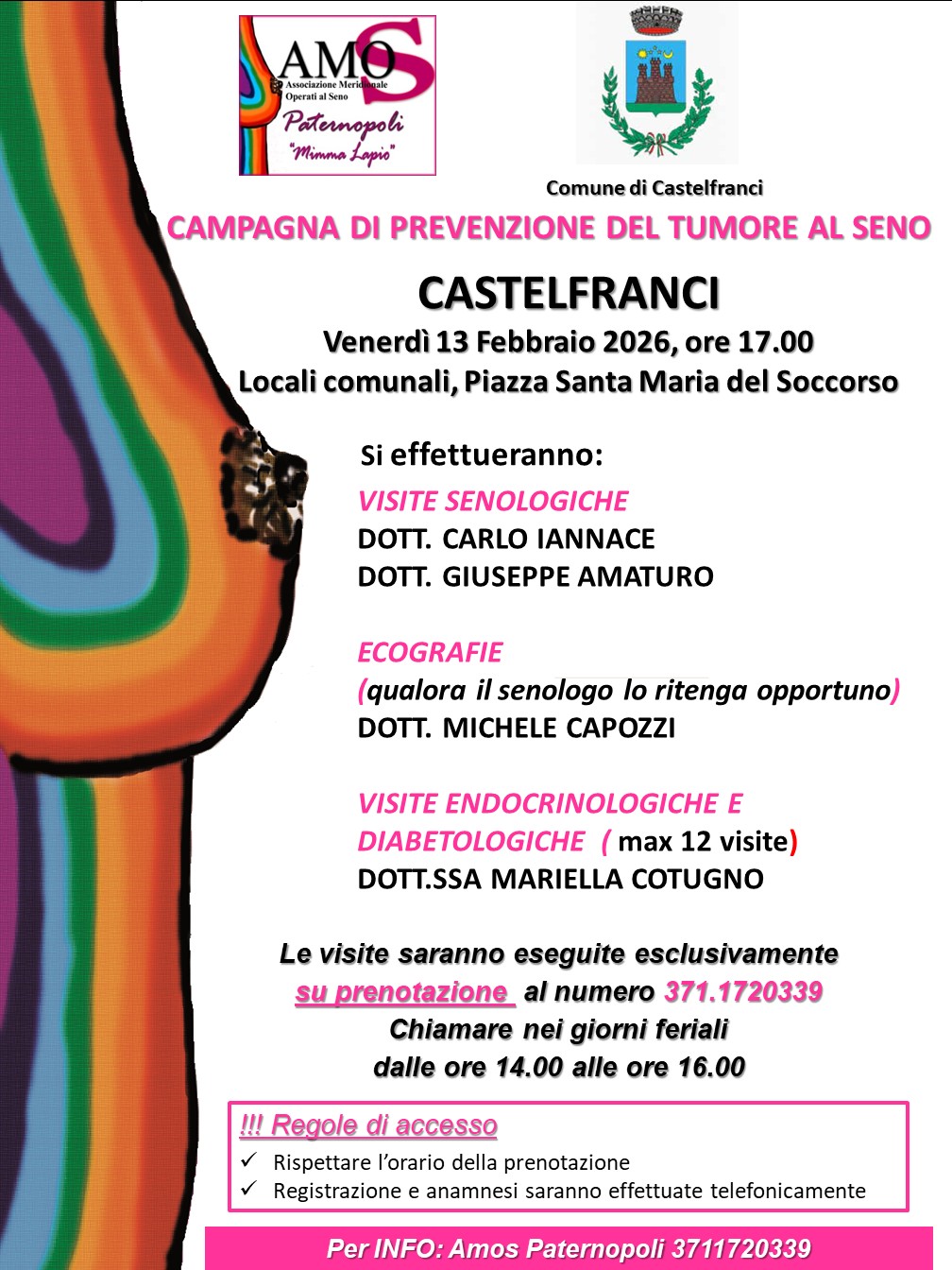 Campagna prevenzione tumore al seno: 13 febbraio 2026, ore 17:00 presso locali comunali in Piazza Santa Maria del Soccorso.