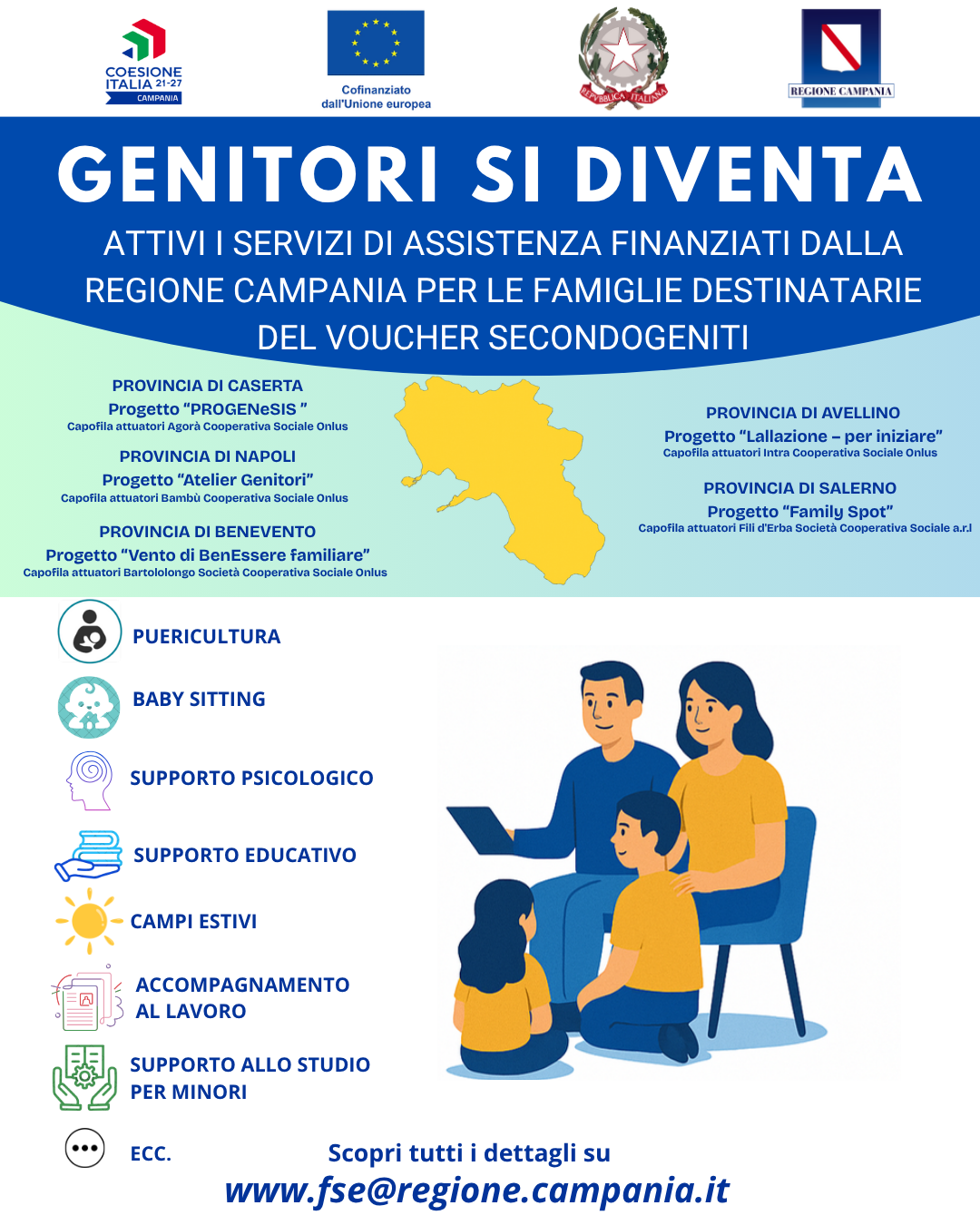 Genitori si diventa: servizi di asssitenza finanziati dallal Regione Campania per le famiglie destinatarie del voucher secondogeniti